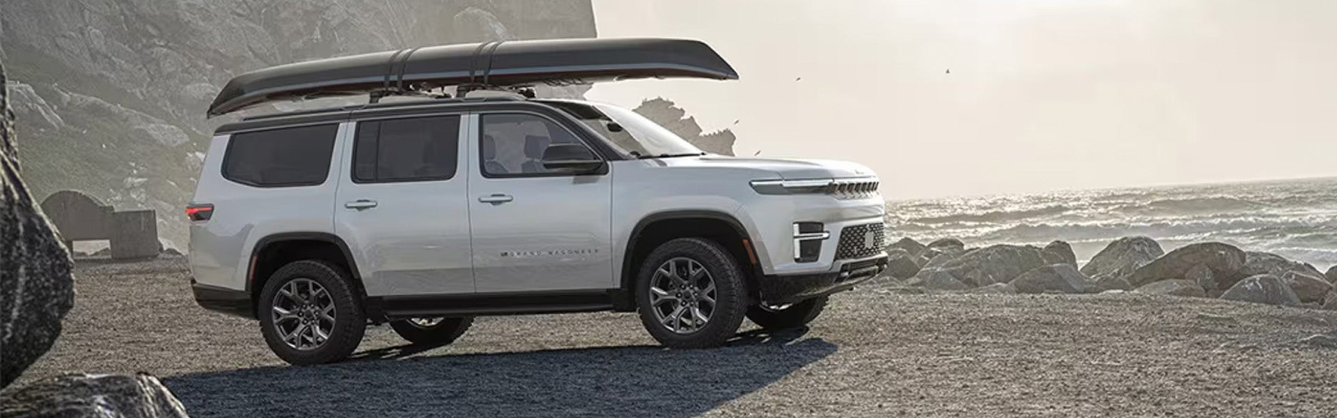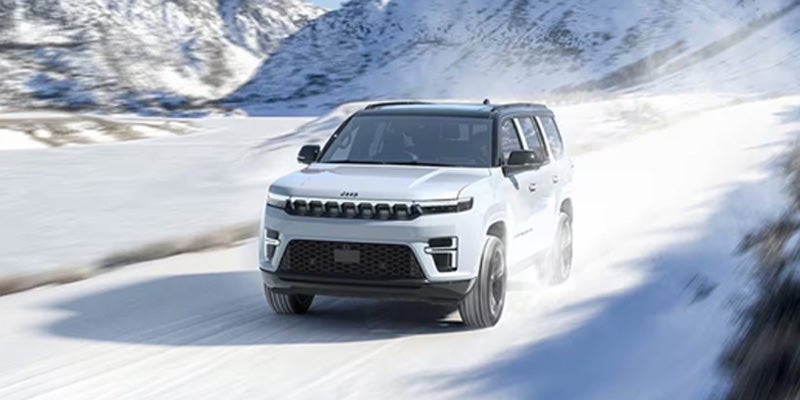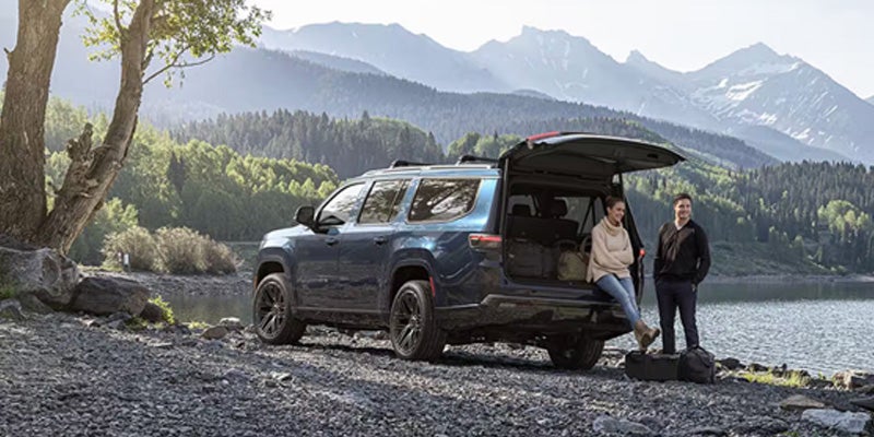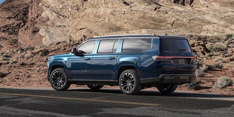 The Quadra-Lift® Air Suspension System delivers optimal body control and exceptional on-road handling while offering 10 inches of ground clearance. The shocks and suspension are calibrated to help keep your journeys smooth even when the road gets rough. Choose from new and classic available color options and match your 2026 Jeep® Grand Wagoneer to your personal style. The illuminated seven-slot grille features new active grille shutters that help regulate engine temperature and enhance efficiency. The 2026 Jeep® Grand Wagoneer is the only vehicle in its class to offer an available Tri-Pane Panoramic Sunroof. Just press a button and take in some fresh air and huge views. Available power retractable and programmable running boards automatically retract and unfold when you get in and out of your 2026 Jeep® Grand Wagoneer. Their unique design also creates a seal that keeps dirt and mud out of the vehicle when they’re retracted. Beyond their dramatic appearance, the dynamic available 22-inch wheels deliver improved handling, greater stability at higher speeds and even more grip—compared to smaller tires. The organic feel of our available deeply grained American walnut surfaces brings rustic warmth to the sleek cabin. Climb into the rich Palermo leather-trimmed seats in the 2026 Jeep® Grand Wagoneer—and then discover their available 24-way power adjustments, along with massage capability. That's when you notice the Palermo leather trim on the center console and door panels as well. And just like that, you’re taking the long way every day. The 2026 Jeep® Grand Wagoneer puts an end to the great family debate. Every seat is the best seat, thanks to the most second-row legroom in its class and the most first- and second-row hip room in its class. Whether it’s three rows of seating with room for up to eight or the most rear cargo volume among standard wheelbase models in its class, the 2026 Jeep® Grand Wagoneer adapts to your family's seating and storage needs. Full-passenger mode offers seating for up to eight people while the roomy cargo area remains spacious enough to pile high with bags on a big trip or boxes during a move. By lowering either 60% or 40% of the third row, you can accommodate longer and bulkier items, from skis to surfboards. The entire third-row bench seat folds effortlessly into the vehicle at the press of a button, giving you even more room to pack for important trips or much-needed vacations. Lower both rows of the rear cabin seats and take advantage of Most Rear Cargo Volume Among Standard Wheelbase Models In Its Class. This enhanced spaciousness can handle large travel bags, supplies, even the odd piece of furniture.