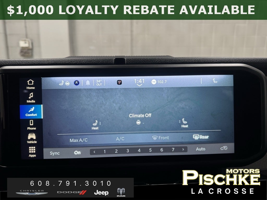 - Radio w/Seek-Scan, Clock, Speed Compensated Volume Control, Aux Audio Input Jack, Steering Wheel Controls, Voice Activation, Radio Data System and Uconnect External Memory Control