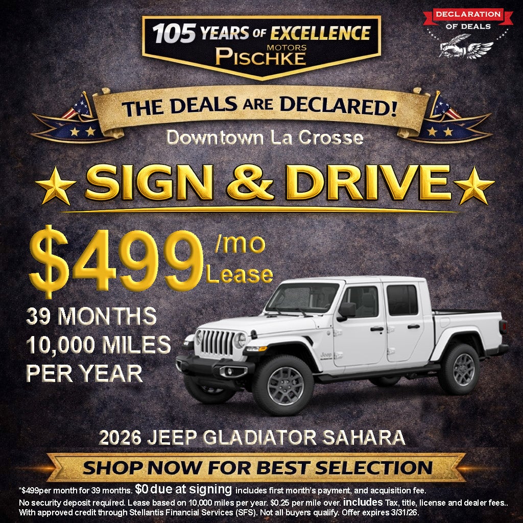 *$499per month for 39 months. $0 due at signing includes first month’s payment, and acquisition fee. No security deposit required. Lease based on 10,000 miles per year. $0.25 per mile over. includes Tax, title, license and dealer fees.. With approved credit through Stellantis Financial Services (SFS). Not all buyers qualify. Offer expires 3/31/26. Stock Number - 3T603